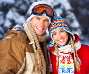 Young happy smiling couple in love. Winter